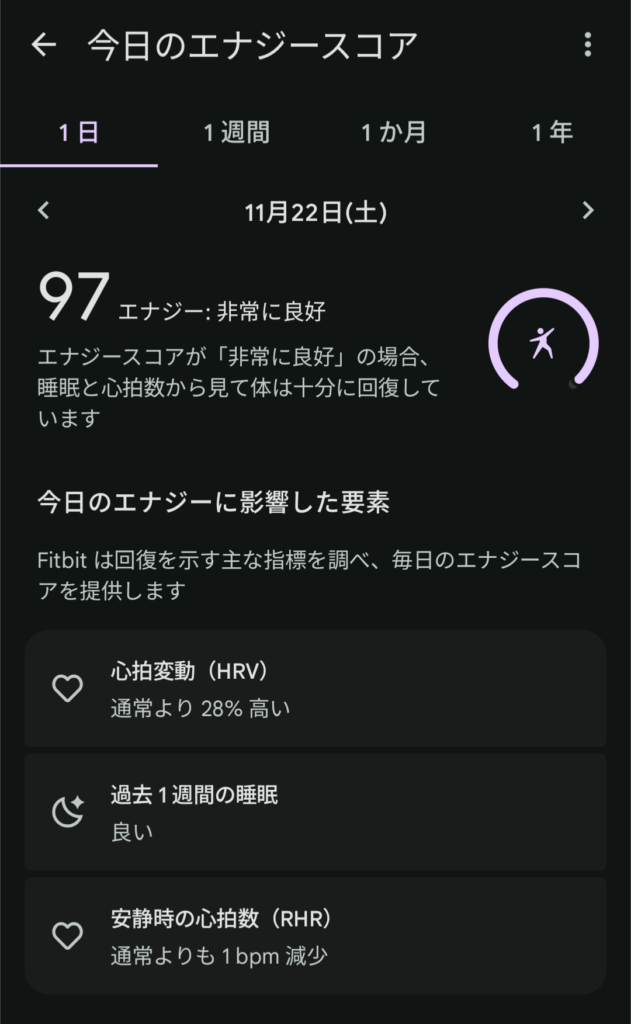 グーグルスマートウォッチでは普段の自分の生体情報から、その日の身体のパフォーマンスを数値化してくれます。